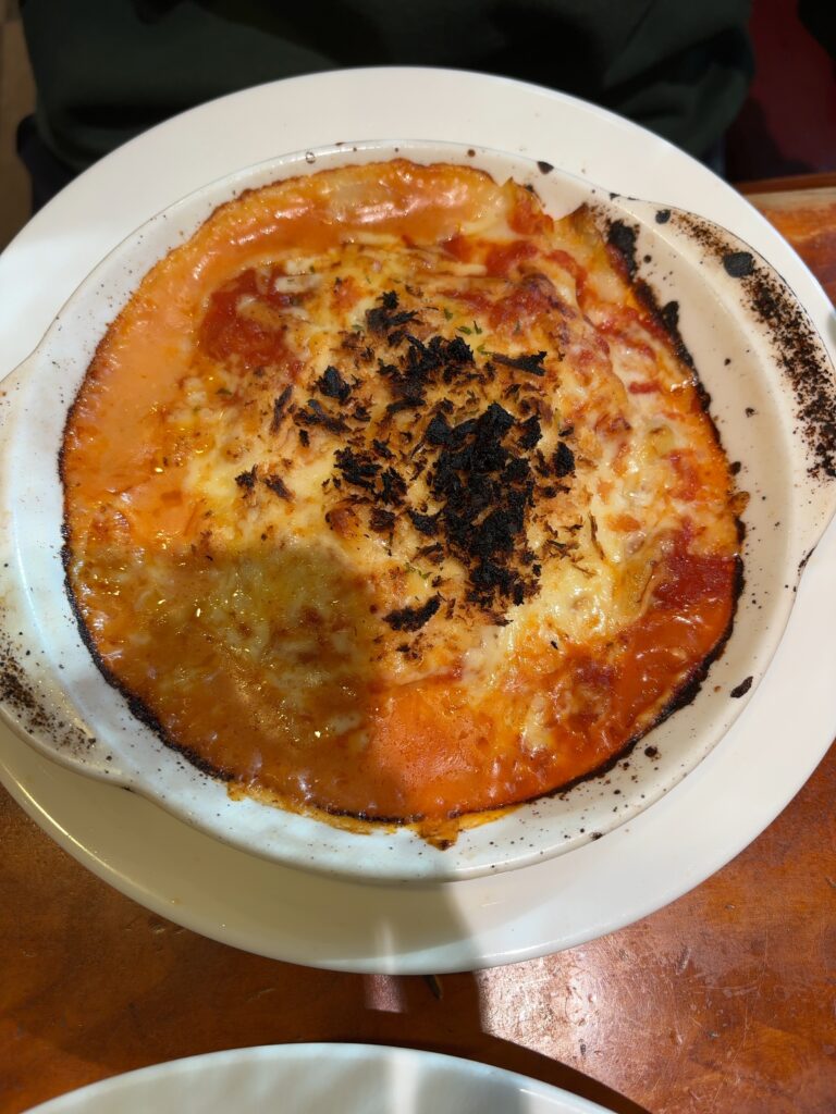 トマトソースとチーズが合わさってこちらもすごくおいしかったです。