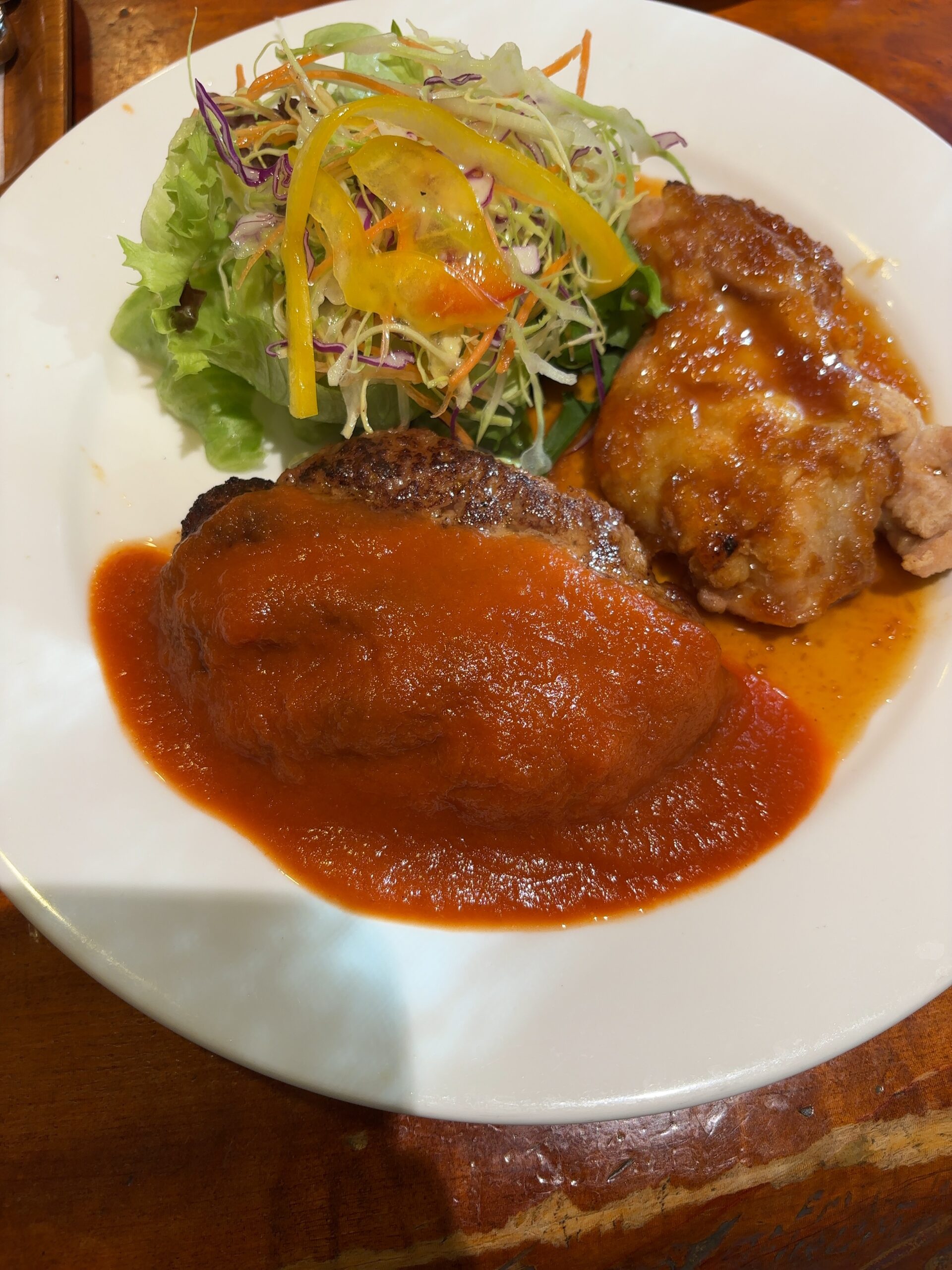 優柔不断な方には、ハンバーグとチキンソテーなど、複数のメインが楽しめるプレートもおすすめです。